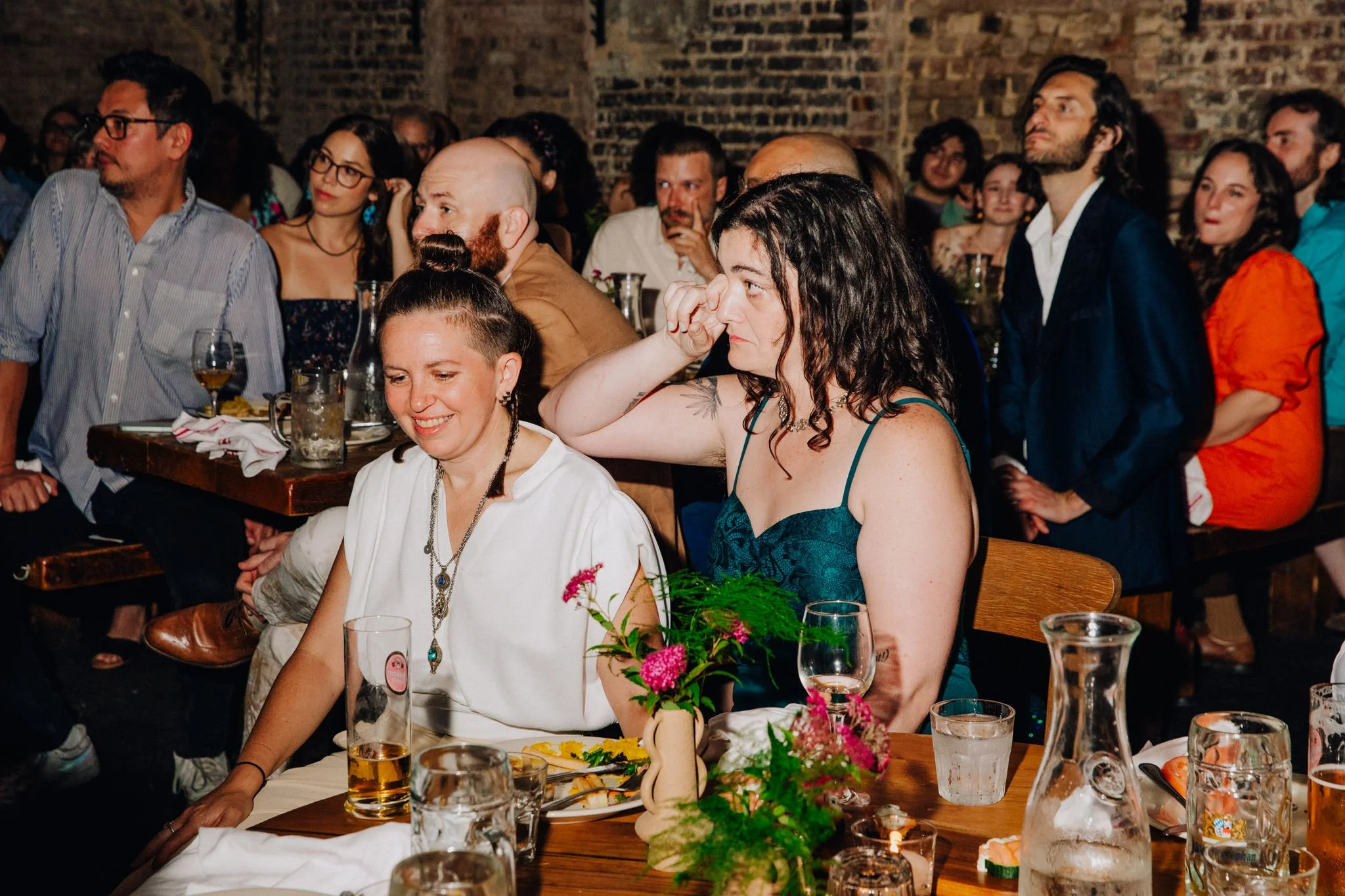 Suzanne and Heather already had an intimate wedding ceremony with their family, but wanted to have another celebration for their friends. We met up in Williamsburg by the water for some quick portraits together and then moved to their reception space at Radegast Hall, where there was lots of poetry and happy tears.